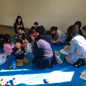 一方お母さんたちの心配を感じていたのかいないのか、託児の子どもたち。泣いたり、ママを探しりする場面もありましたが、おもちゃで遊び、おやつも食べ、楽しく過ごしていました。