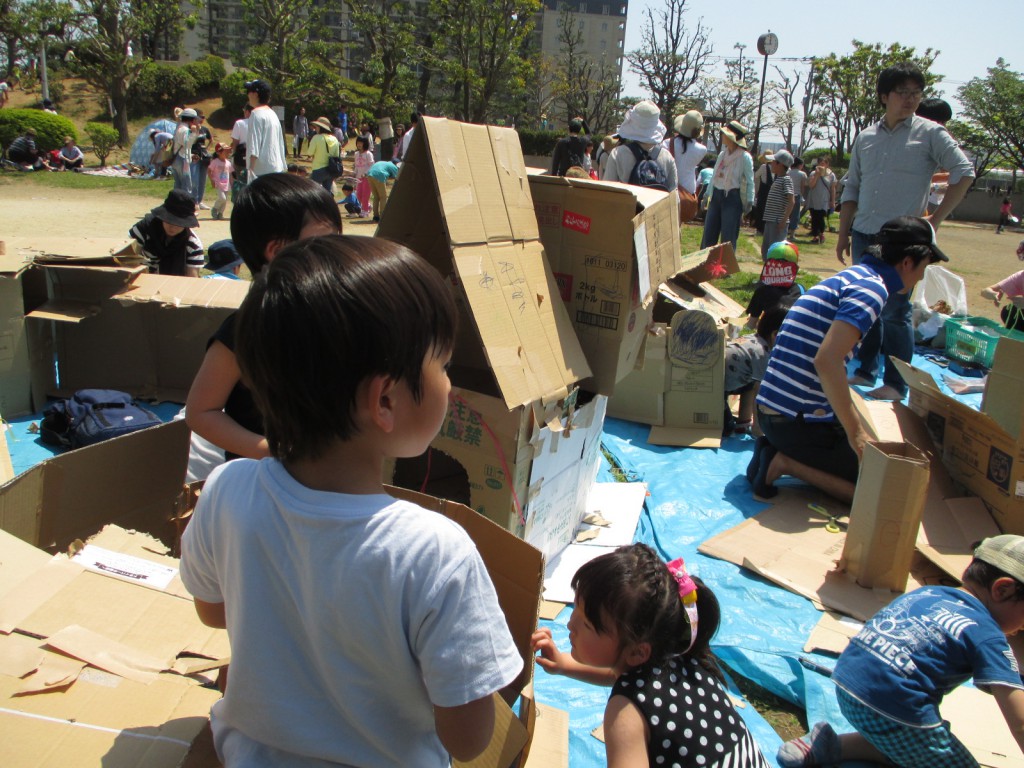 夏のように暑い晴天の下、いっぱいの人がわんぱく広場であそびましたよ。