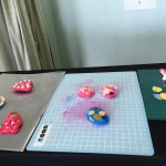 まずは紙粘土をこねこねして裏に磁石を貼って…