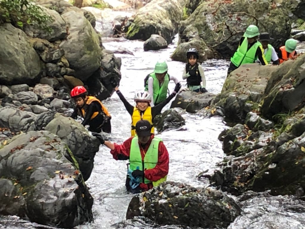 指導者のアドバイスをよく聞き、大人も子どもも声を掛け合い、大きい子が小さい子を気遣いながら、二時間かけて、川を登っていきました。