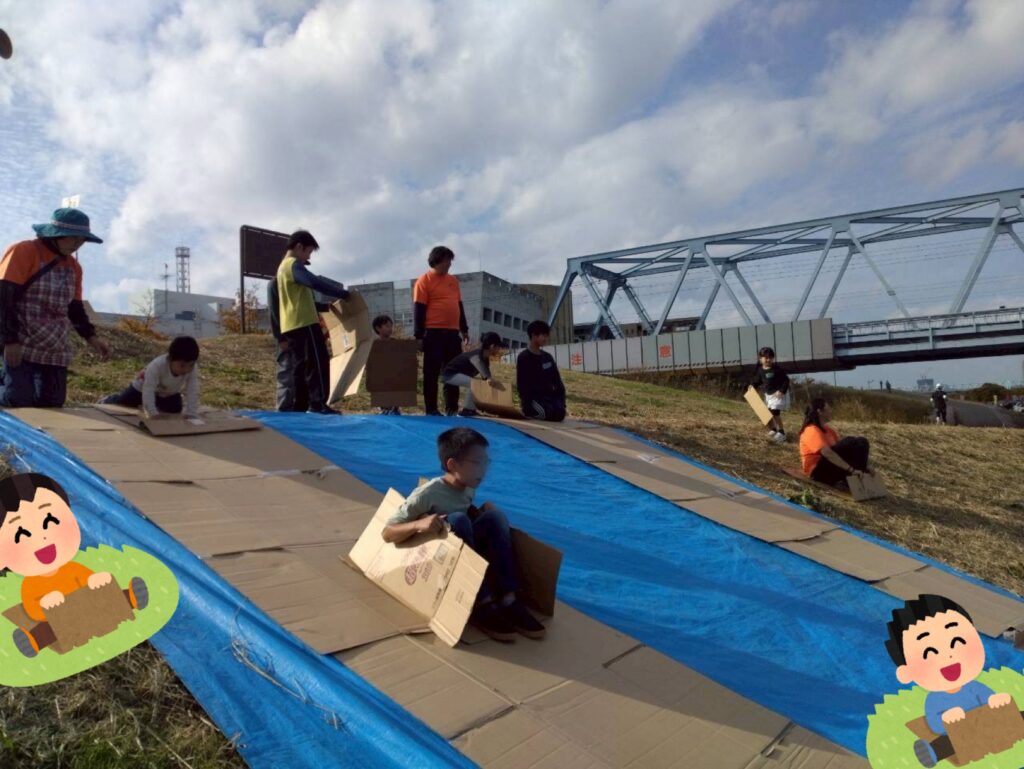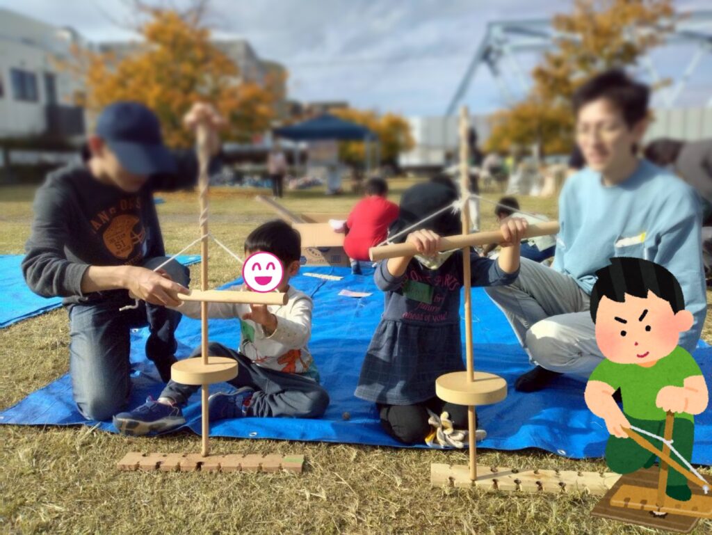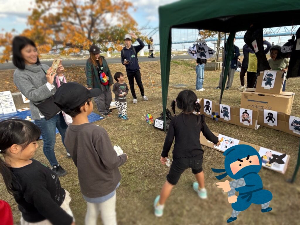 忍者あそびに芝滑り、バットモス、火起こし体験まで、楽しいことが次々と続きました。子どもも大人もいきいきとした表情で、思いきり遊びを楽しみました。