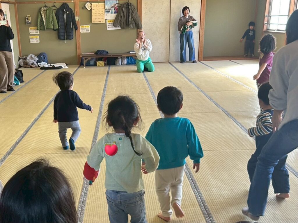 童謡コーナーではおなじみの曲でのんびり踊り、よーいどん!でみんなでいっしょに走ったり、「エビカニクス」「ベイビーシャーク」「ジャンボリーミッキー」ではノリノリで踊ったり、寒い冬を吹き飛ばすような元気いっぱいのクレヨンになりました!