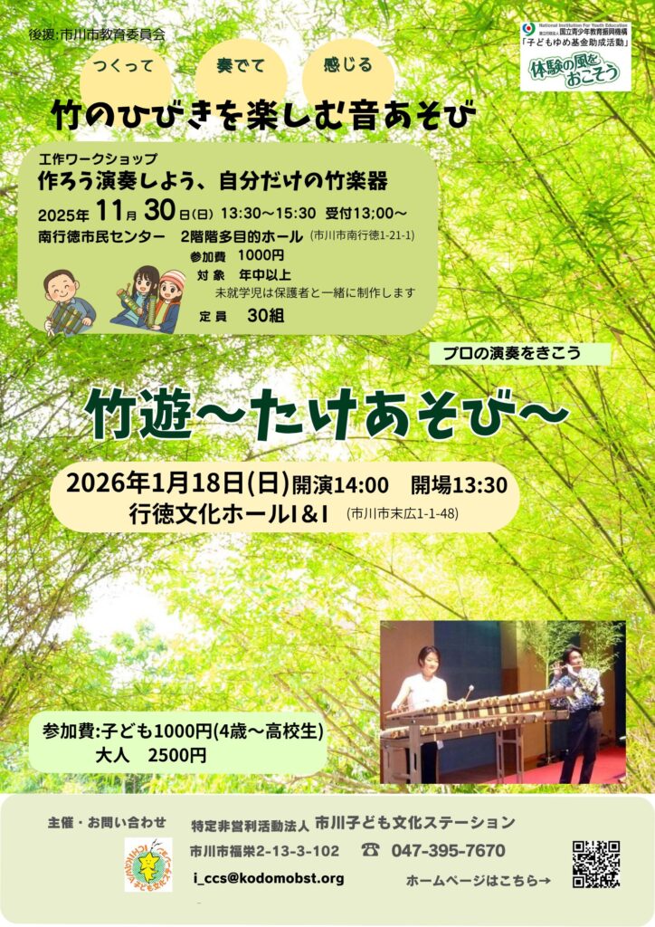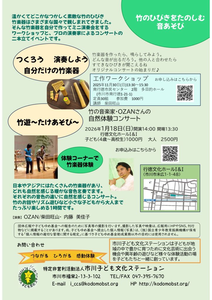 温かくて懐かしく、豊かな音色の竹楽器のひびきを感じる二つのイベントです。
