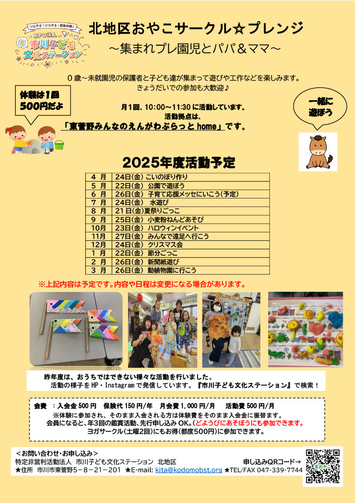 どようびにあそぼう(週末のおやこサークル)にも参加ができます。
